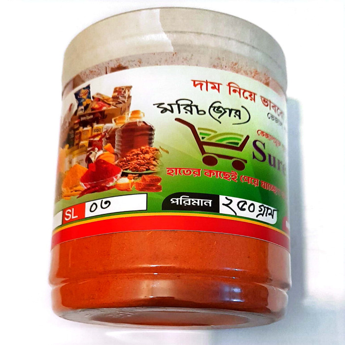 মরিচের গুড়া (১০০% বিশুদ্ধ) হল একটি সাধারণ মসলার পণ্য যা মরিচ (বিশেষত লাল মরিচ) শুকিয়ে এবং পিষে তৈরি করা হয়। এটি খাবারে তীক্ষ্ণ তাপমাত্রা এবং স্বাদ যোগ করতে ব্যবহৃত হয়। মরিচের গুড়া বিভিন্ন ধরনের পুষ্টিগুণ এবং স্বাস্থ্য উপকারিতা প্রদান করে, যেমন: