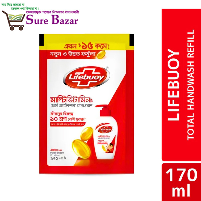 **লাইফবয় হ্যান্ডওয়াশ** একটি কার্যকরী এবং **বিশ্বস্ত অ্যান্টিব্যাকটেরিয়াল হ্যান্ডওয়াশ** যা হাত পরিষ্কার এবং জীবাণুমুক্ত রাখতে সাহায্য করে। এর **অ্যান্টিসেপটিক ফর্মুলা** এবং **মৃদু উপাদান** হাতের ত্বককে পরিষ্কার, নরম ও সতেজ রাখে। এটি বিভিন্ন প্রাকৃতিক উপাদান দিয়ে তৈরি, যা ত্বকের সুরক্ষাও নিশ্চিত করে। এটি একটি সাশ্রয়ী, সহজে ব্যবহারযোগ্য, এবং স্বাস্থ্যকর পণ্য, যা সব বয়সী মানুষের জন্য উপযুক্ত।